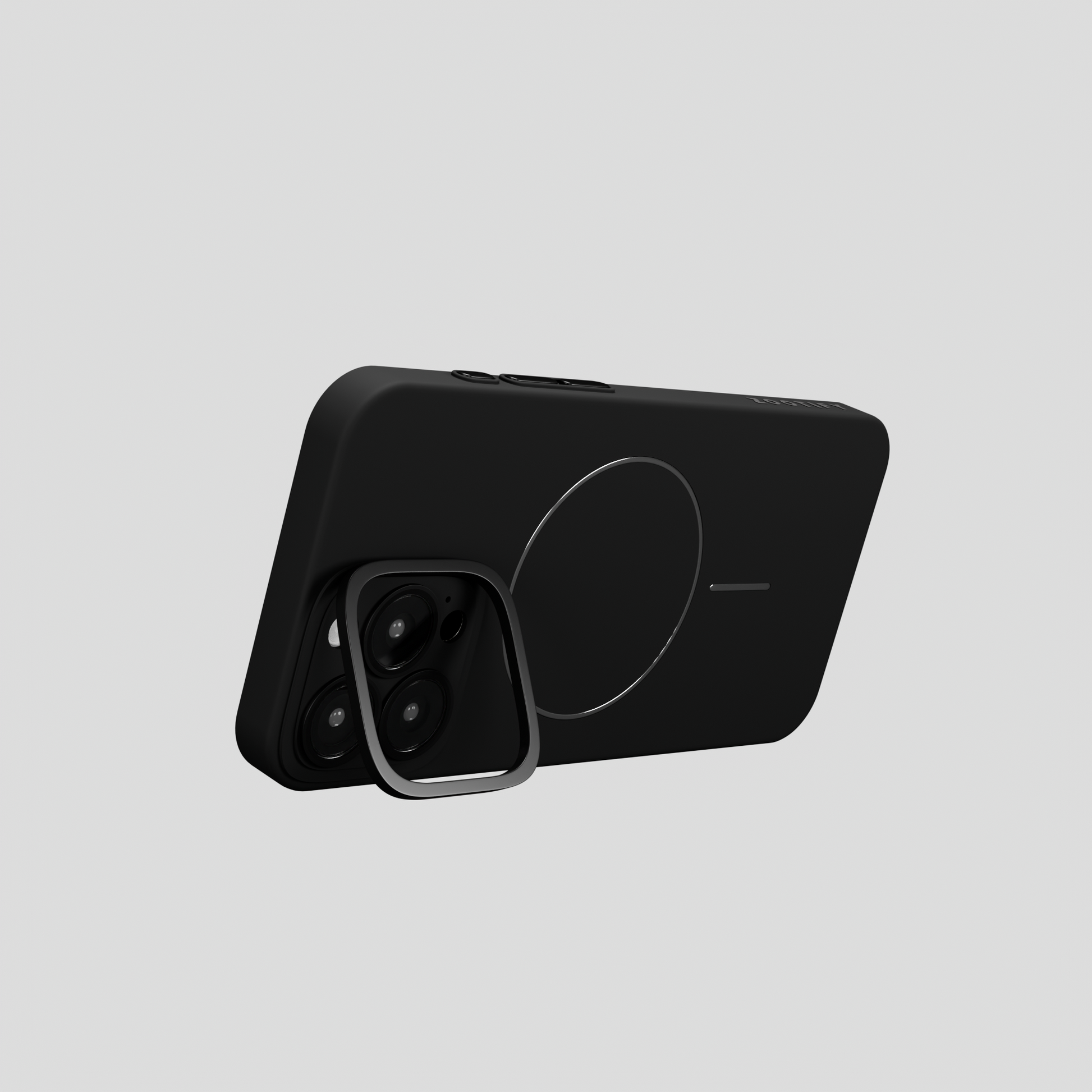 CamSafe – Black Minimal phone case with Kickstand & LensGuard for iPhone 16 pro