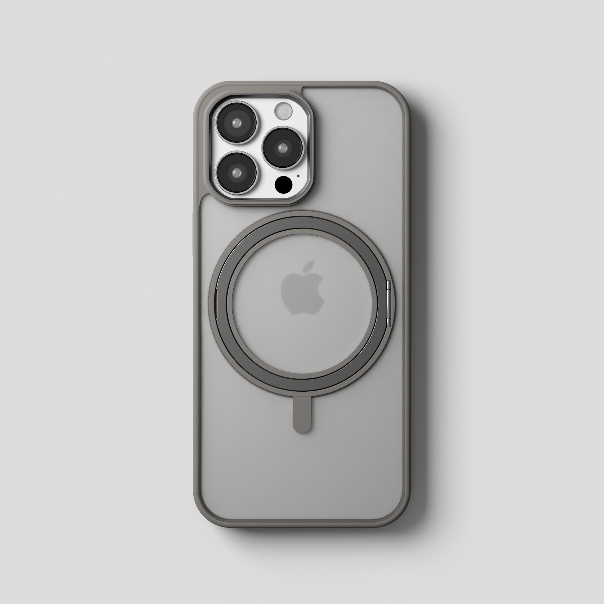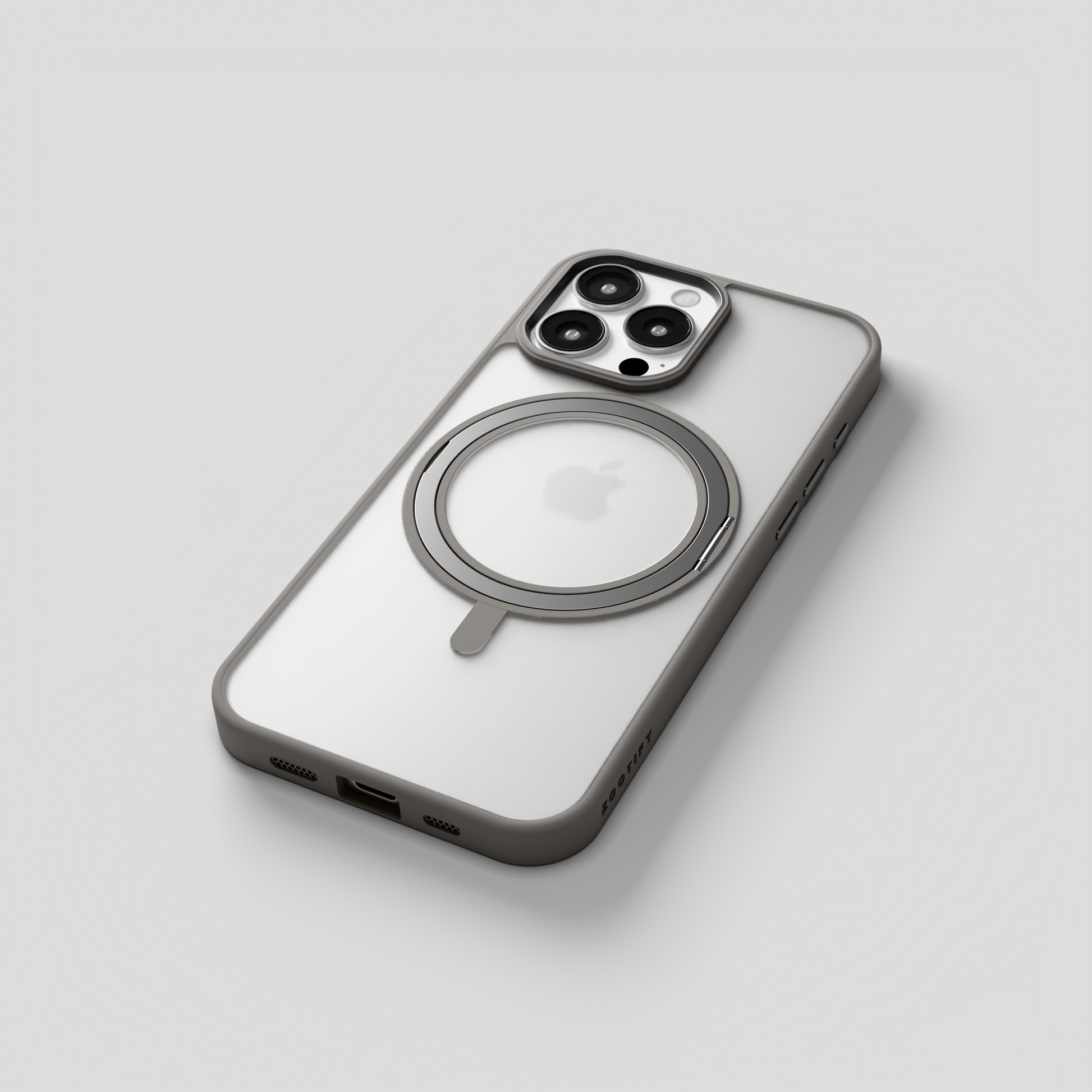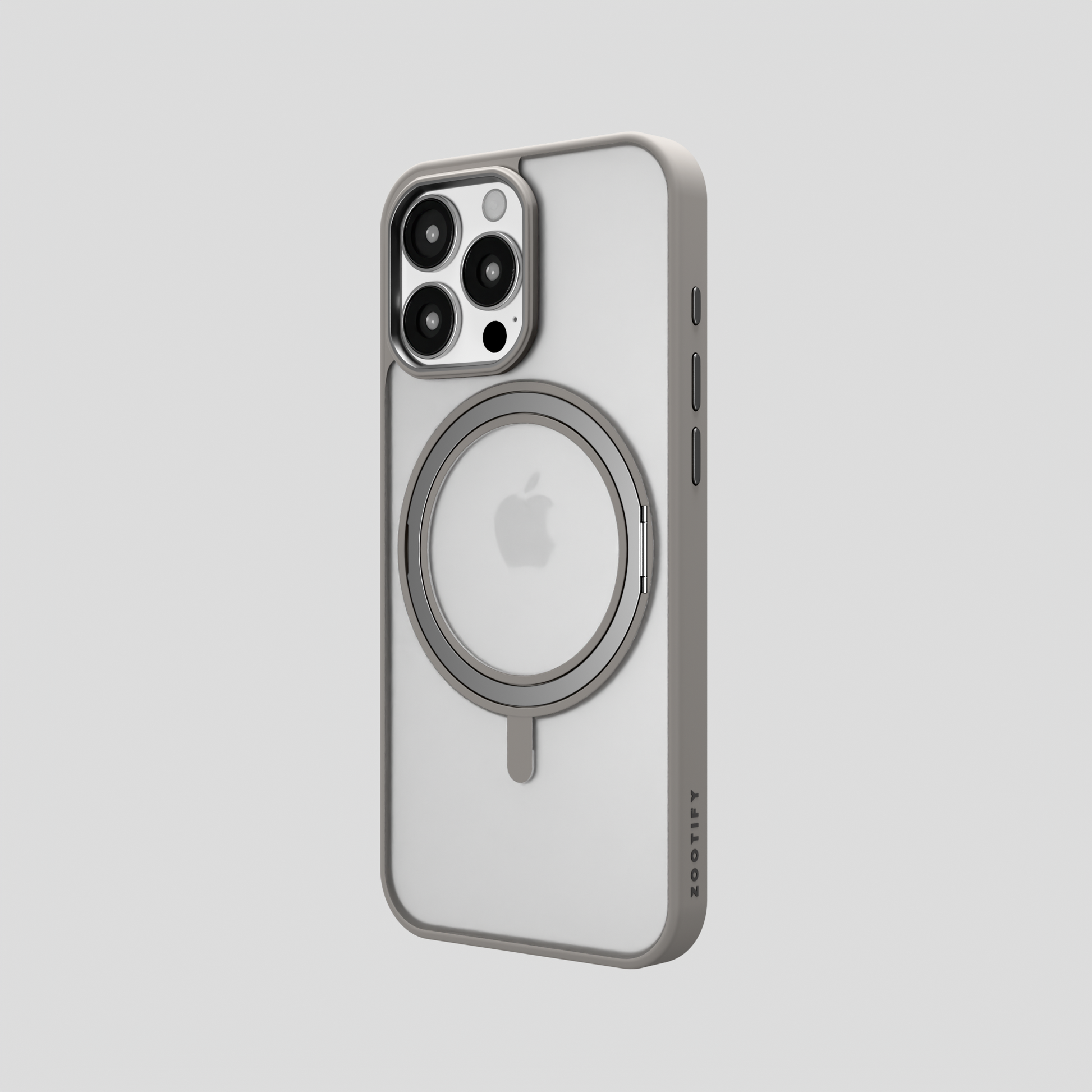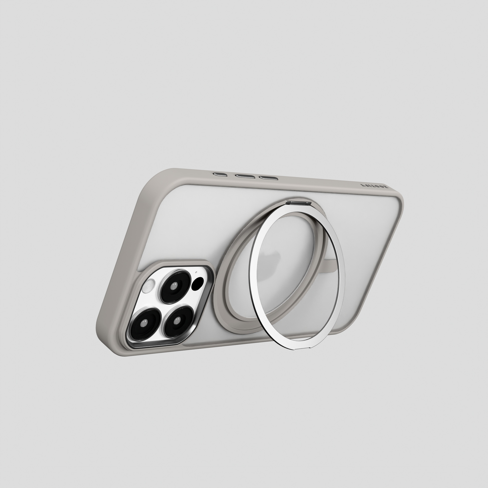 Orbit Grip – Grey 360° Tactile O-Stand Clear transparent Case for iPhone 16 pro