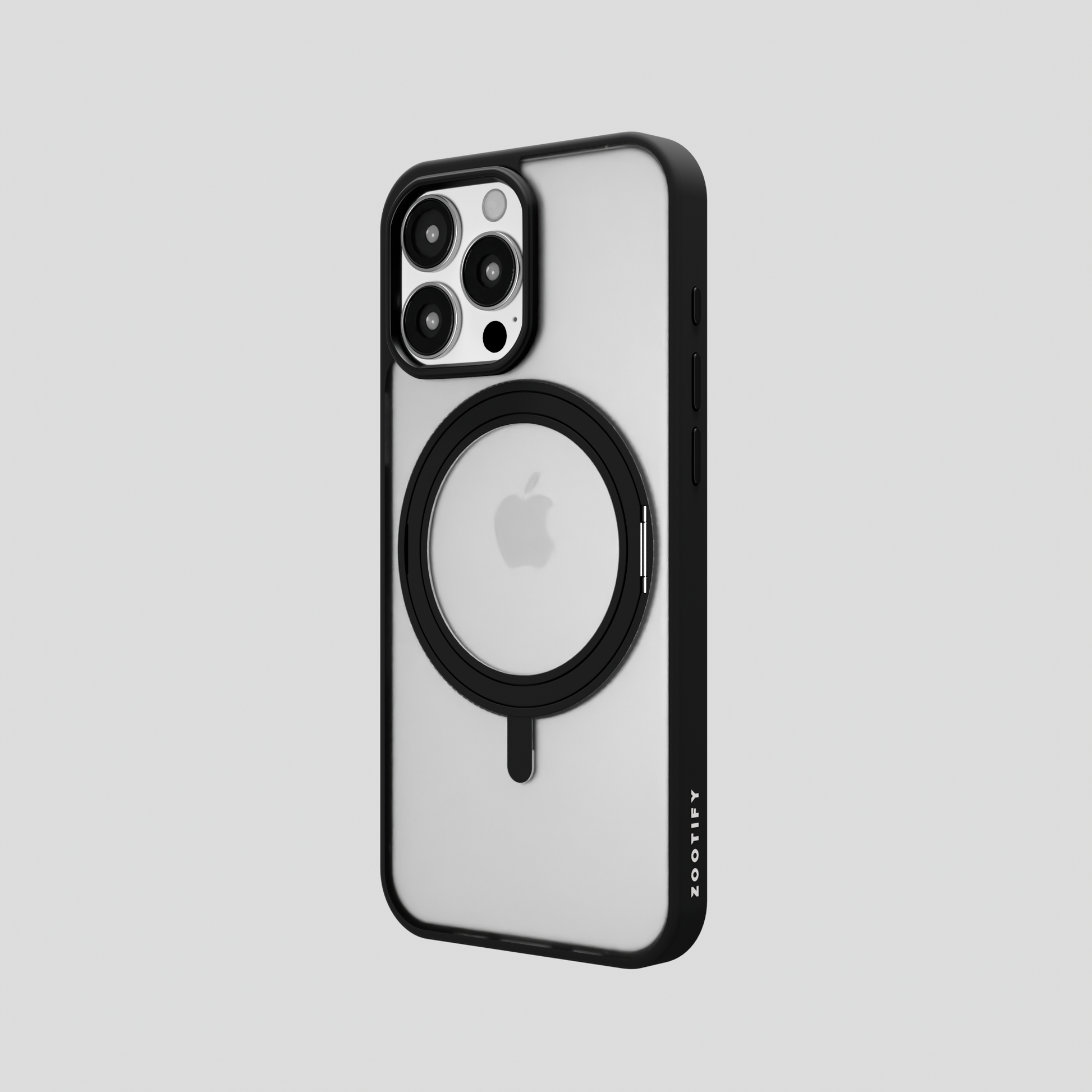 Orbit Grip – Black 360° Tactile O-Stand Clear transparent Case for iPhone 16 pro