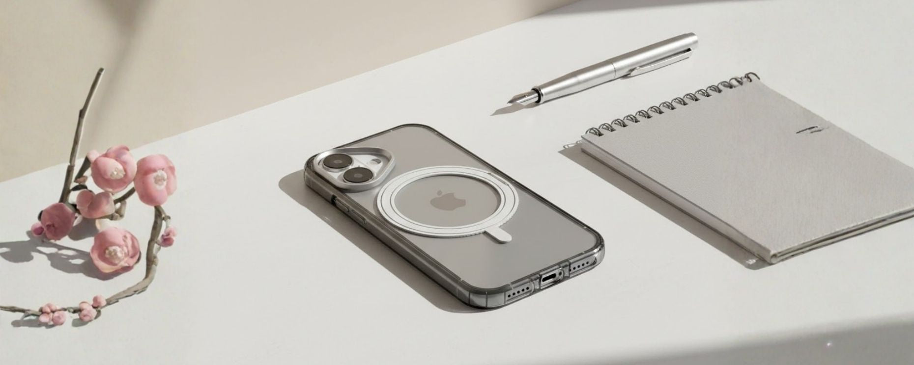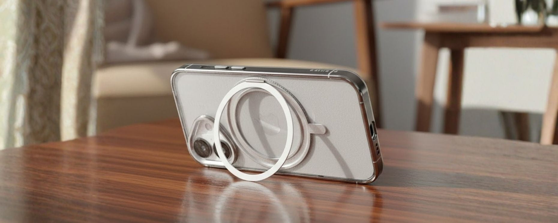 Orbit Grip – Clear-Silver 360° Tactile O-Stand Clear Transparent Case for iPhone 16