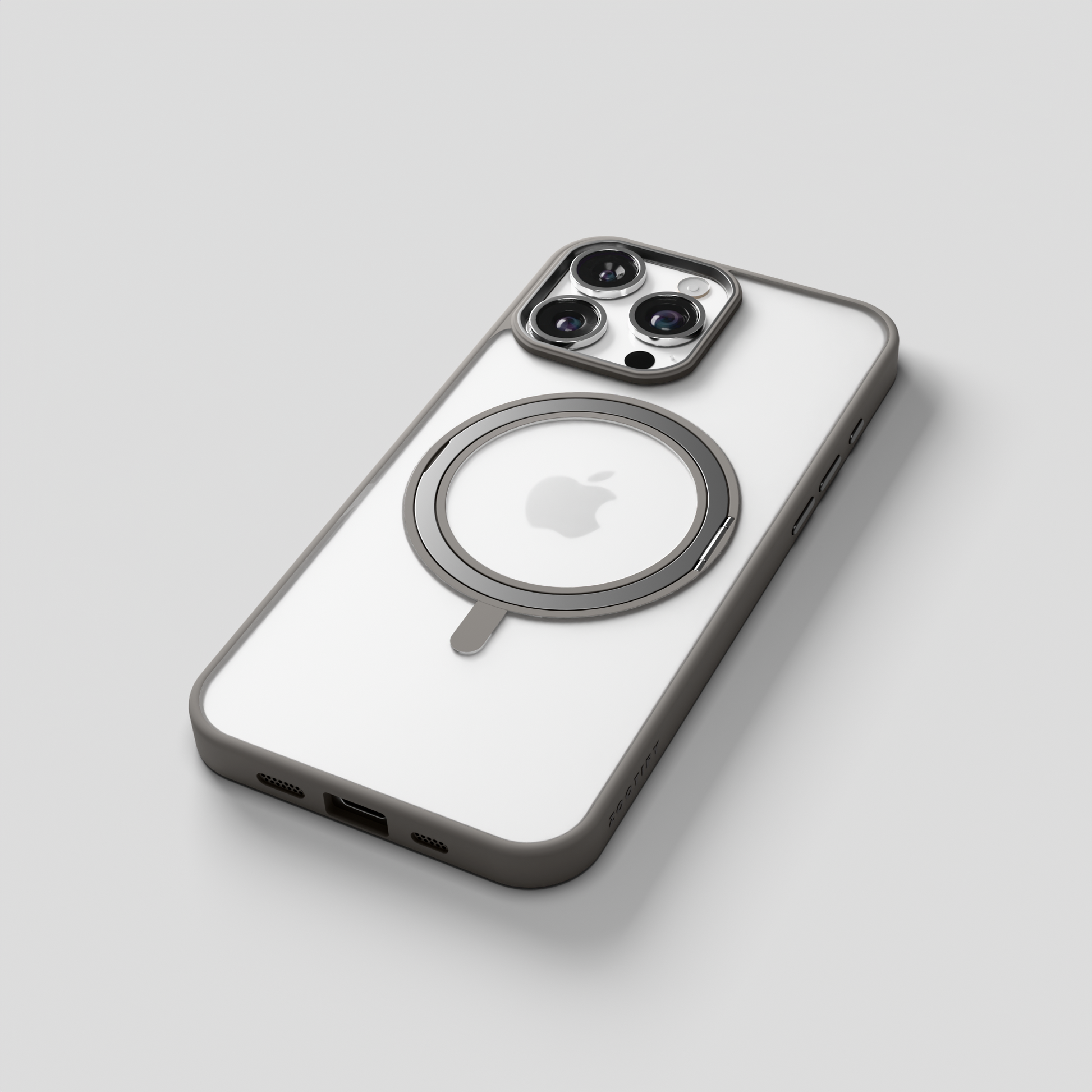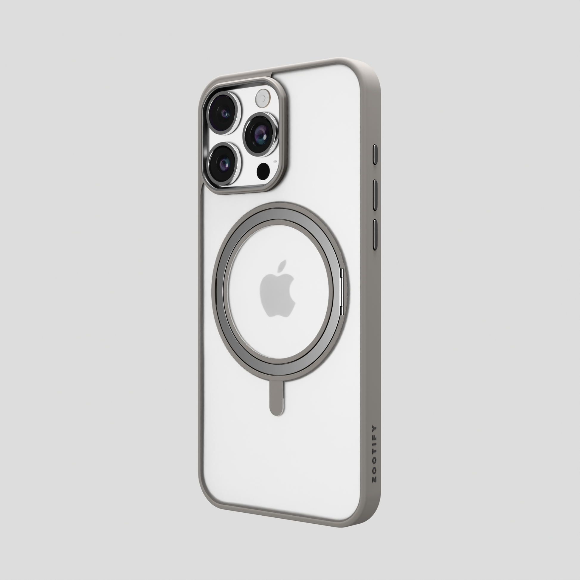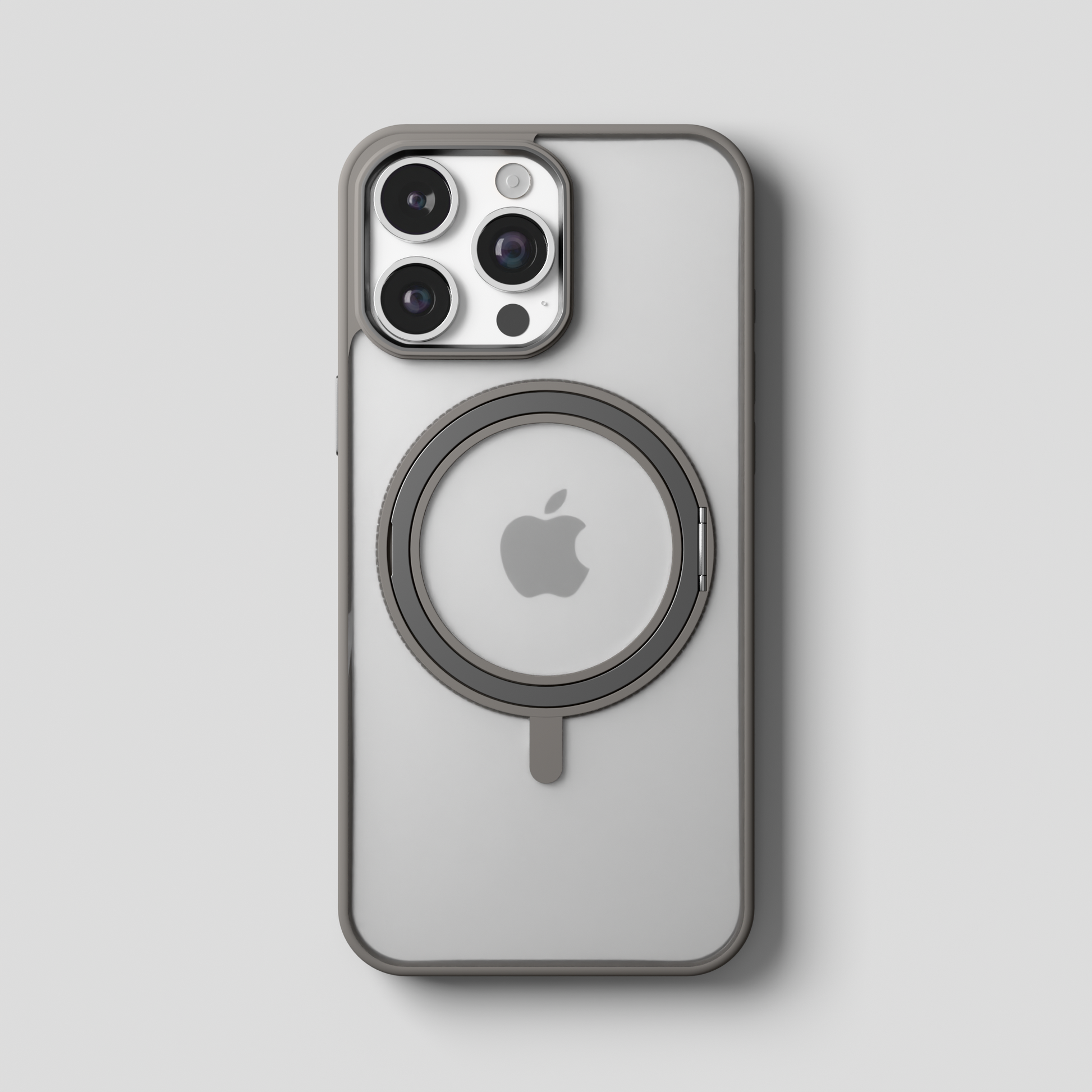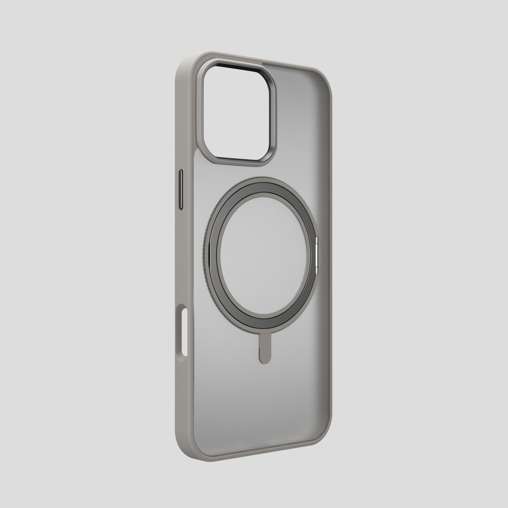Orbit Grip – Grey 360° Tactile O-Stand Clear transparent Case for iPhone 16 pro max